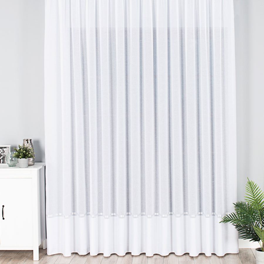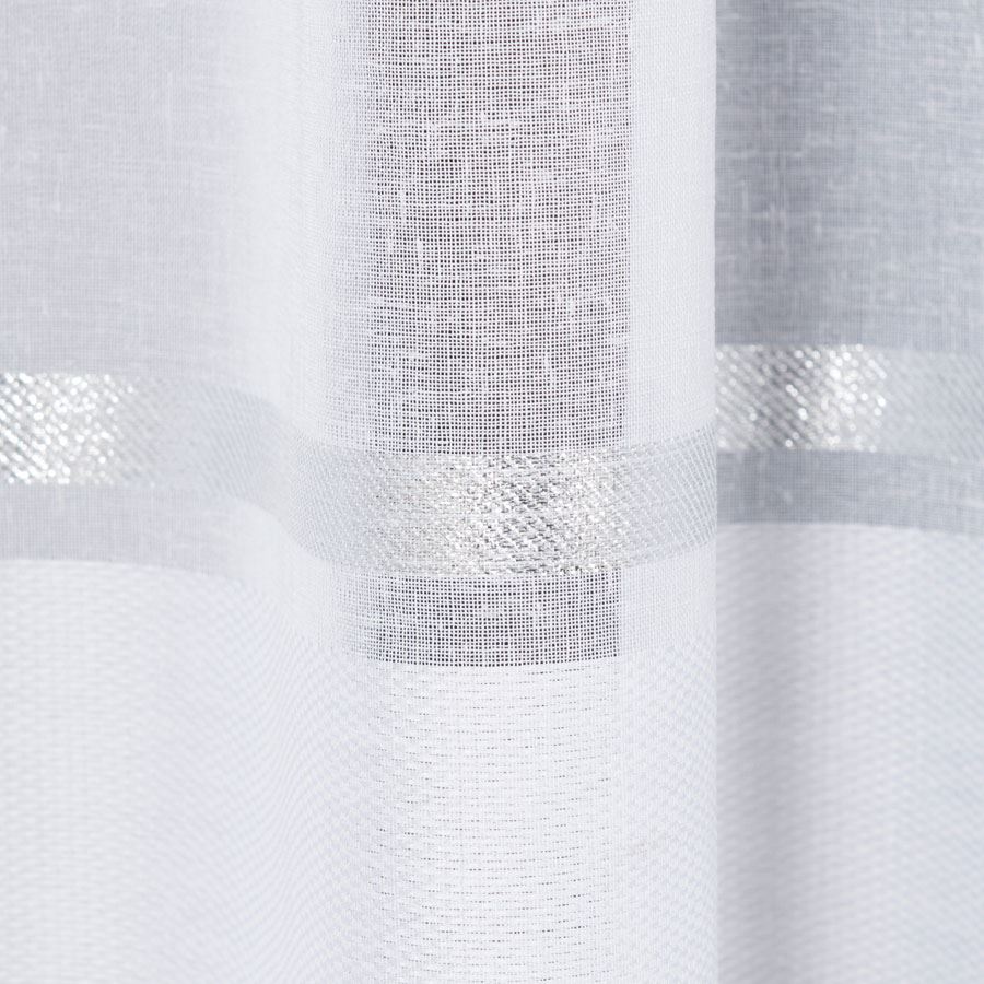 Biela záclona so strieborným prúžkom v spodnej časti výška 250 cm