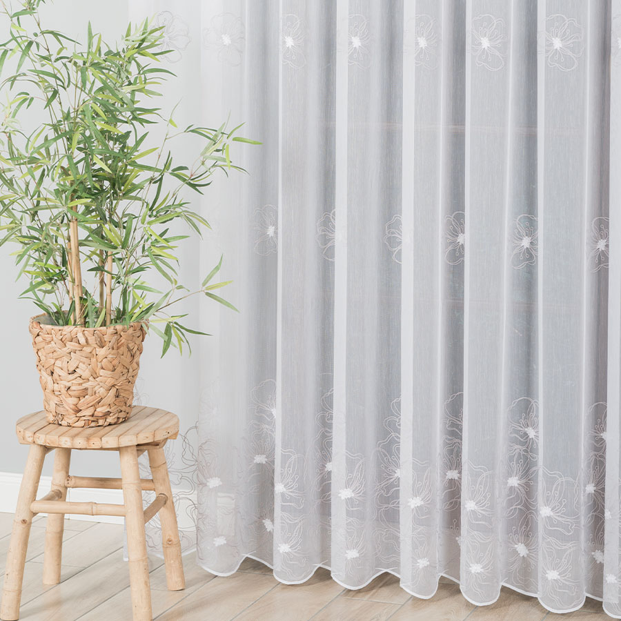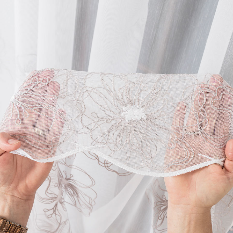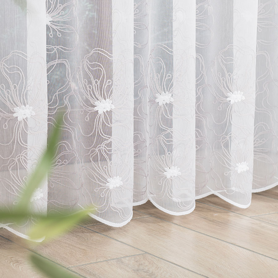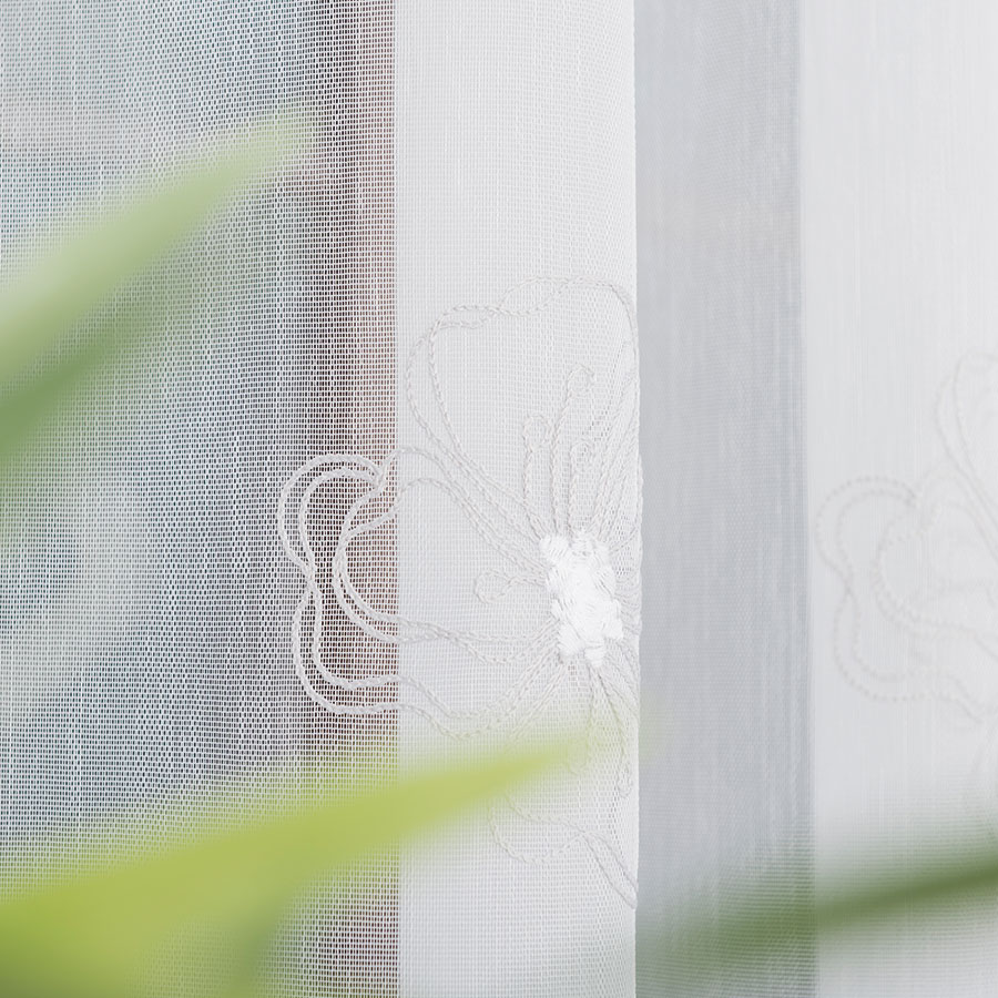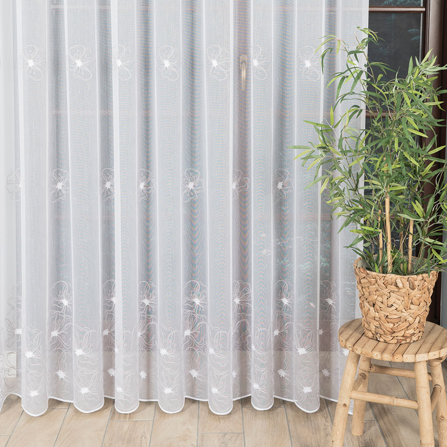 Biela záclona vyšívaný šedý vzor výška 280 cm