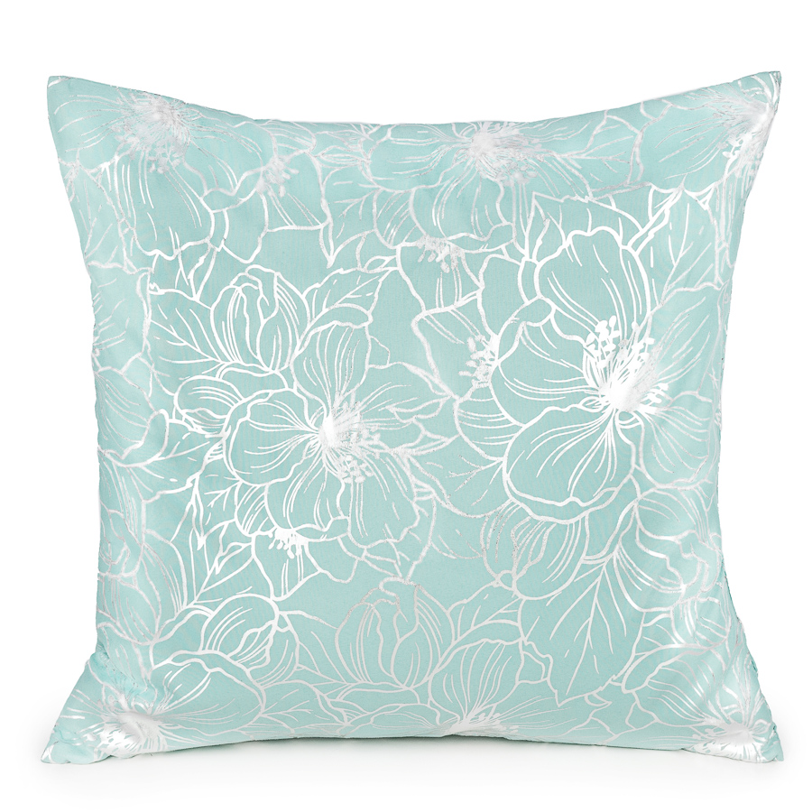 Dekoračná obliečka na vankúš mätovej farby so striebornou potlačou