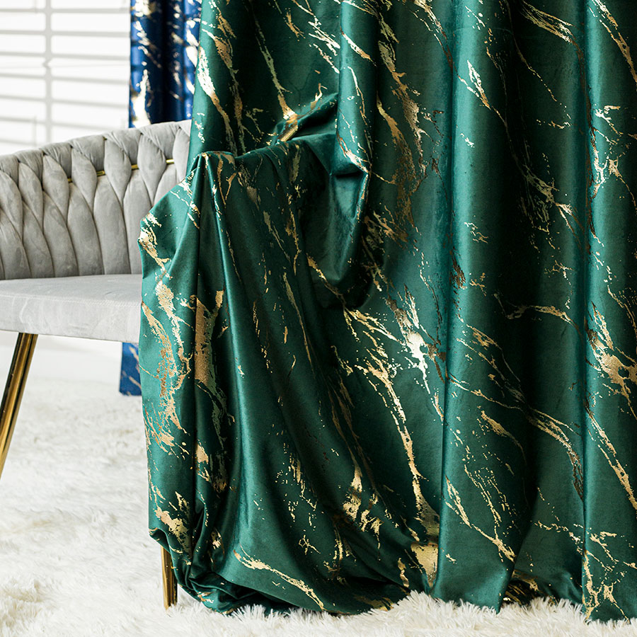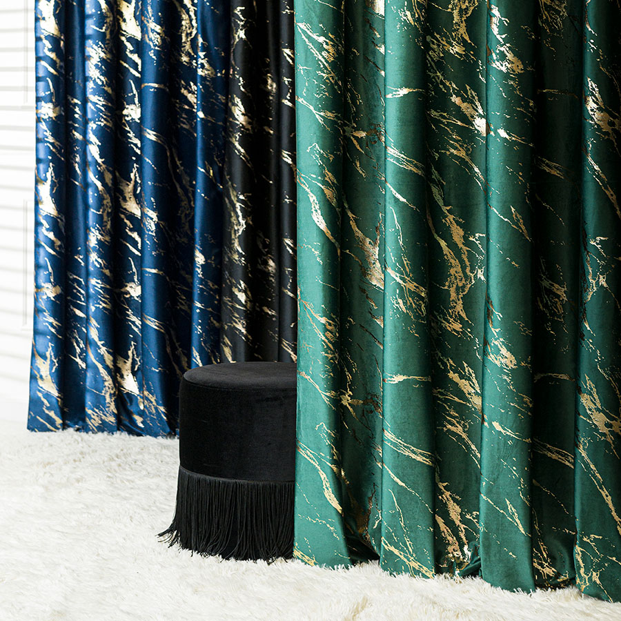 Vyrobený zo zamatového materiálu s jemnou zlatou potlačou, je spojením elegancie a modernosti. Záves má 8 kovových očiek.