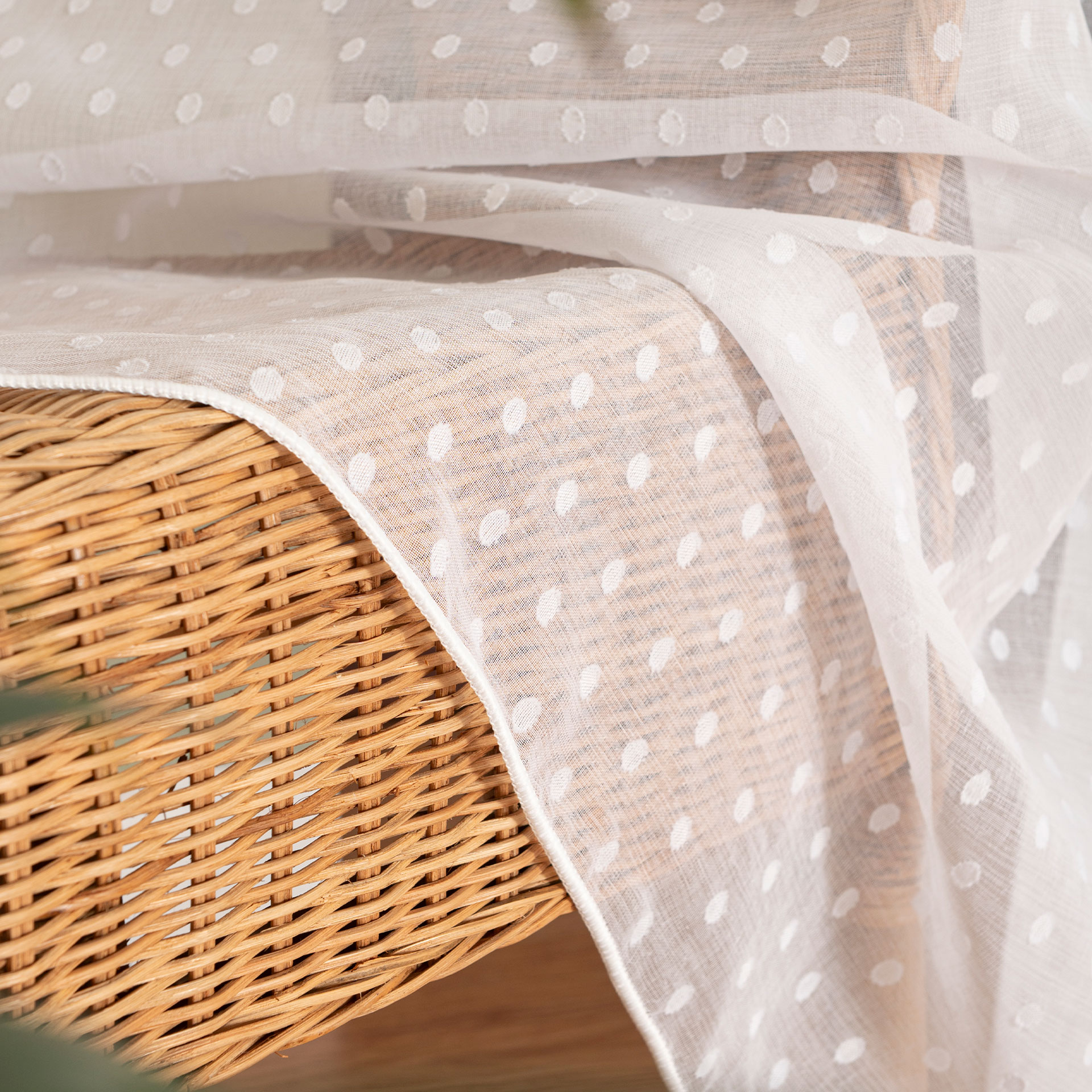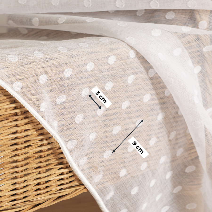 Biela záclona s olovkom v spodnej časti