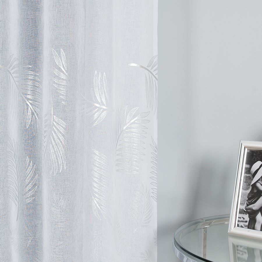 Jednodúcha biela záclona so striebornou potlačou dole s lankom výška 300 cm