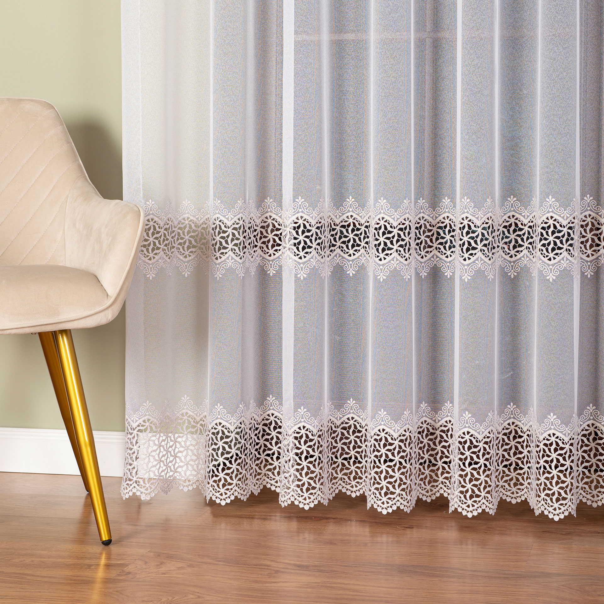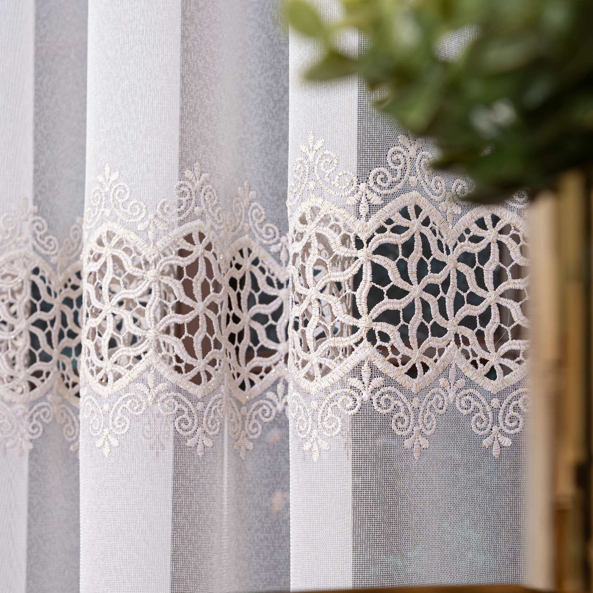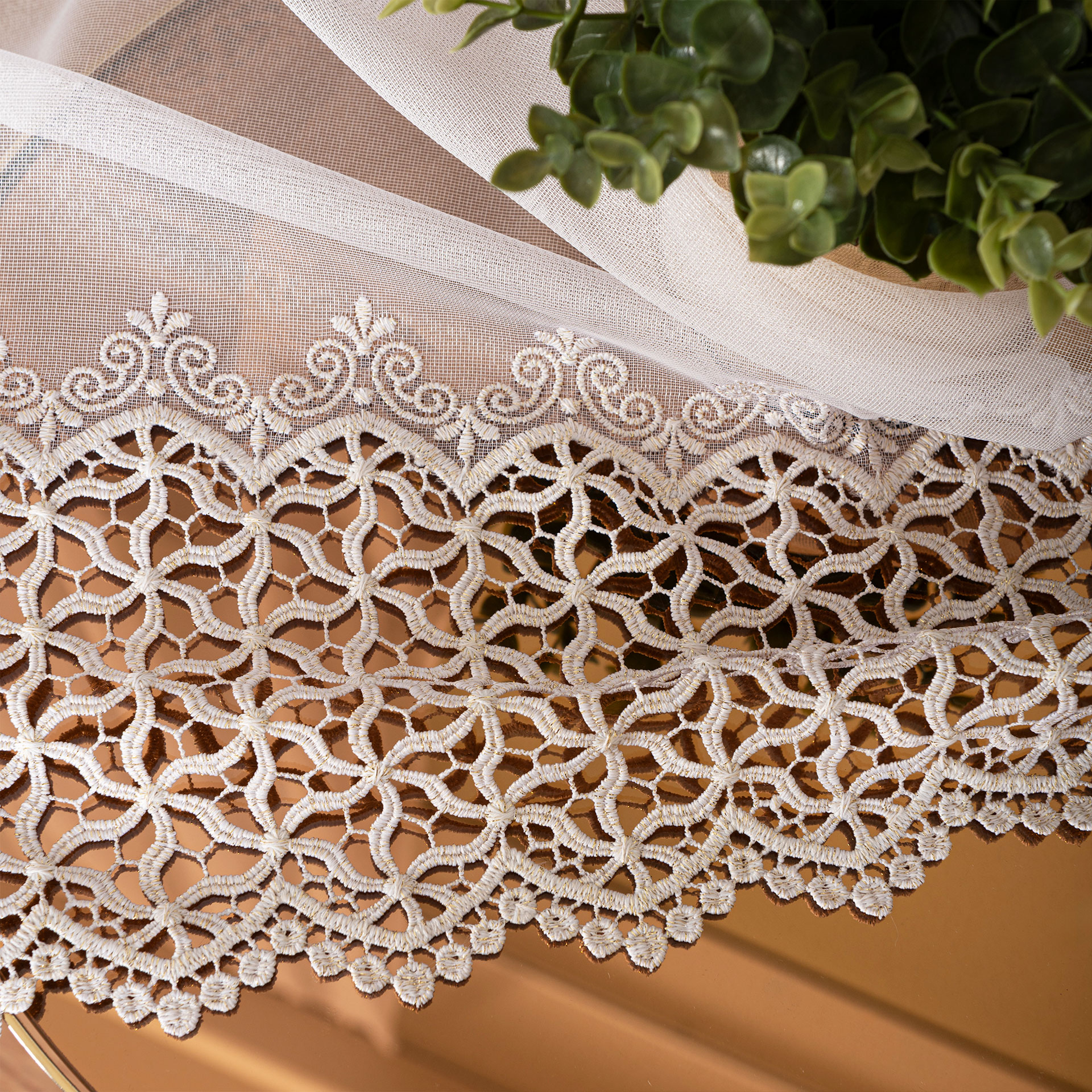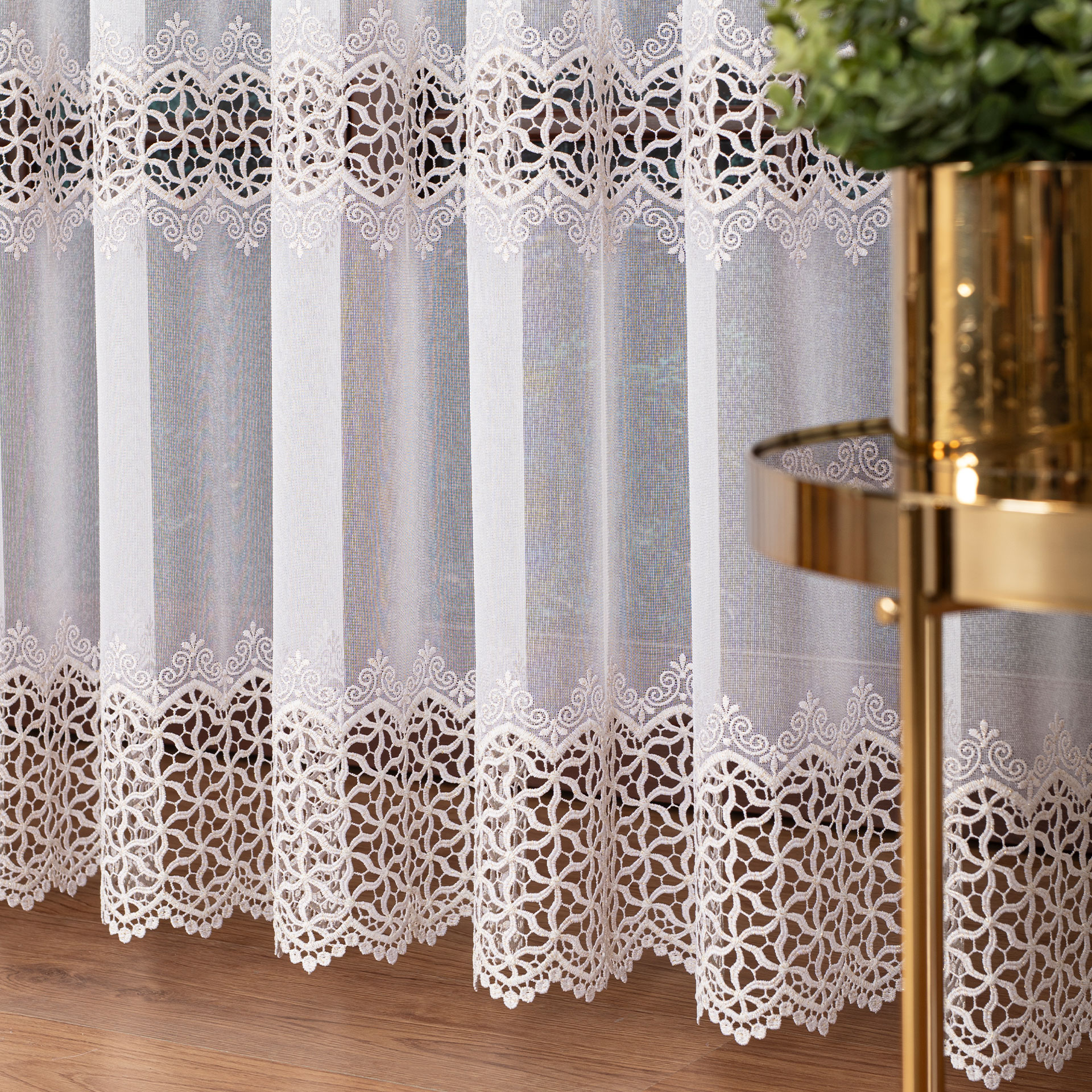 Luxusná krajková záclona metrážová s krémovo zlatou niťou výška 280 cm