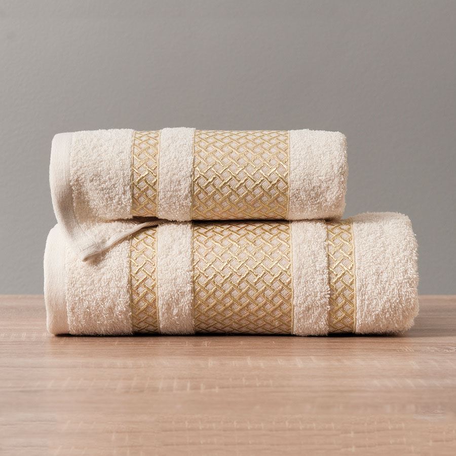 Luxusná osuška 70x140 cm krémová farba so zlatým okrajom