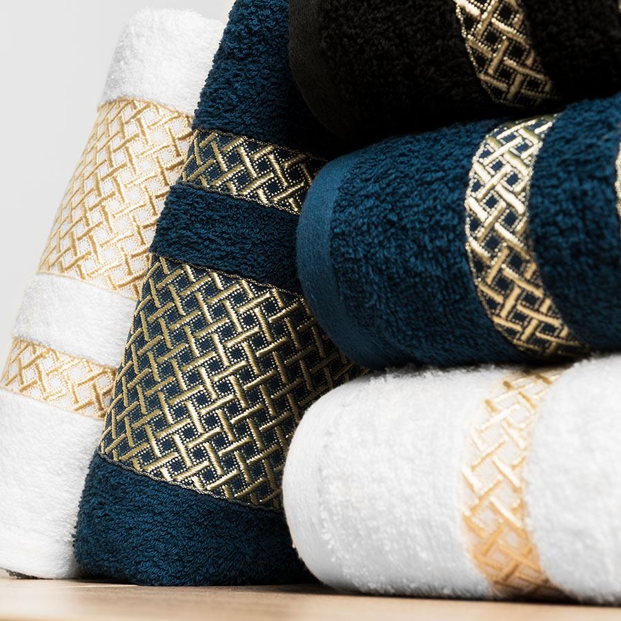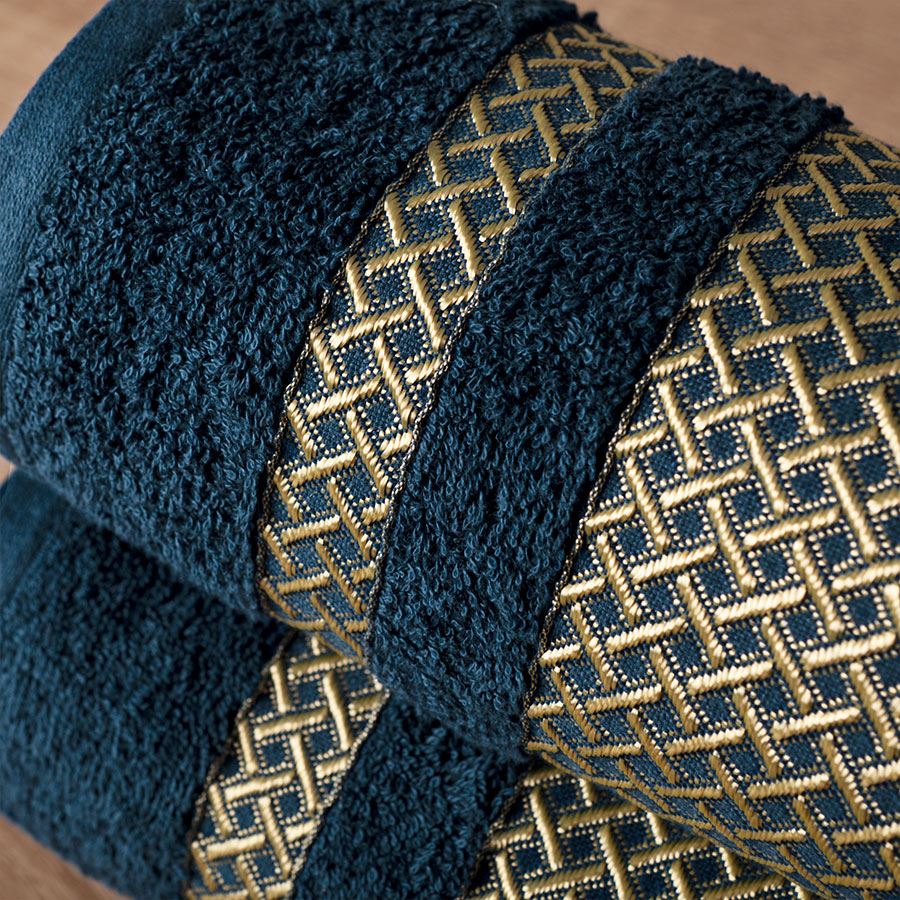 Luxusná osuška 70x140 cm námornícka modrá farba so zlatým okrajom