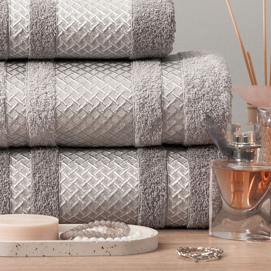 Luxusná osuška 70x140 cm svetlošedá farba so strieborným okrajom