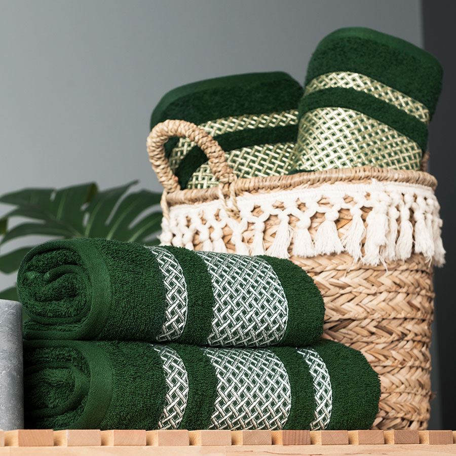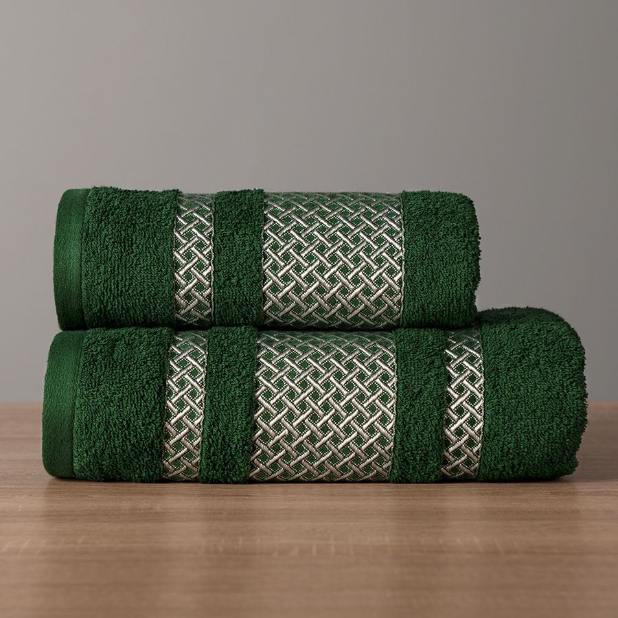 Luxusná osuška 70x140 cm tmavozelená farba, fľaškovitá so strieborným okrajom
