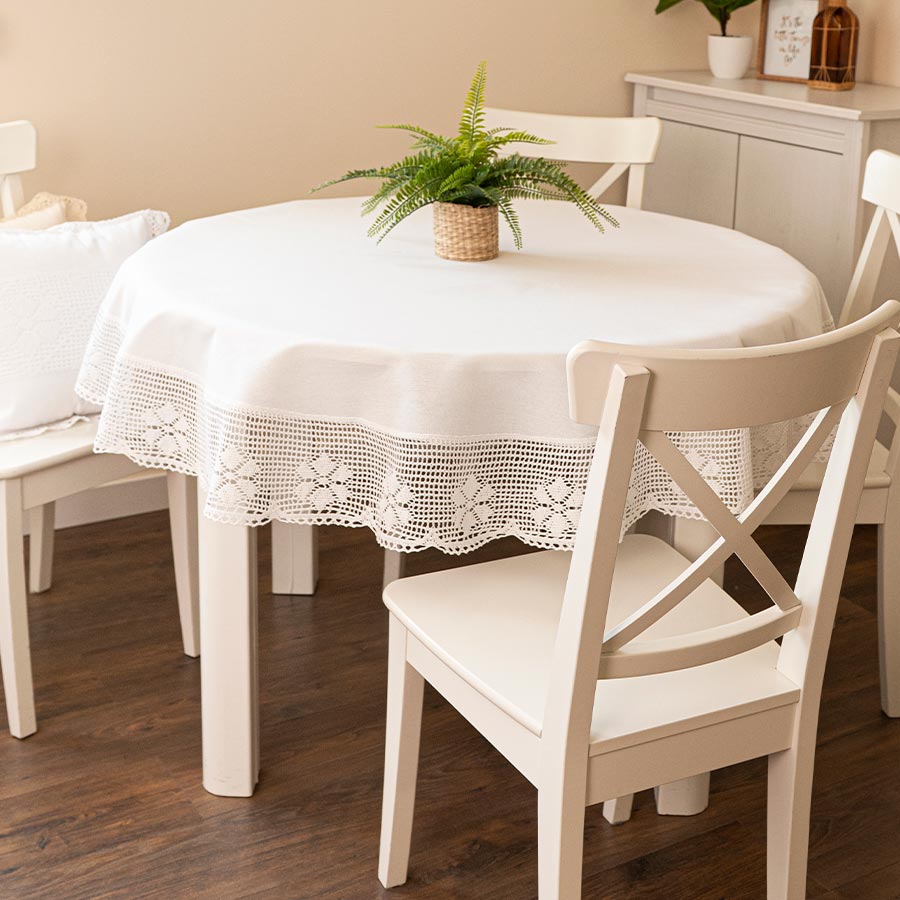 Okrúhly obrus lemovaný krajkou 130 cm