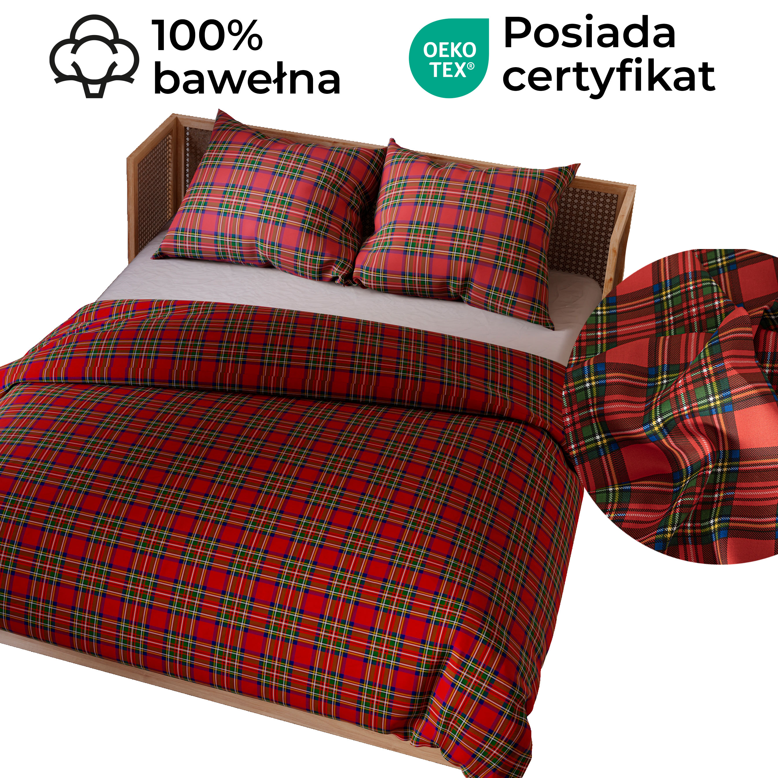 Vianočné obliečky bavlnený satén ŠKÓTI 220x200 cm