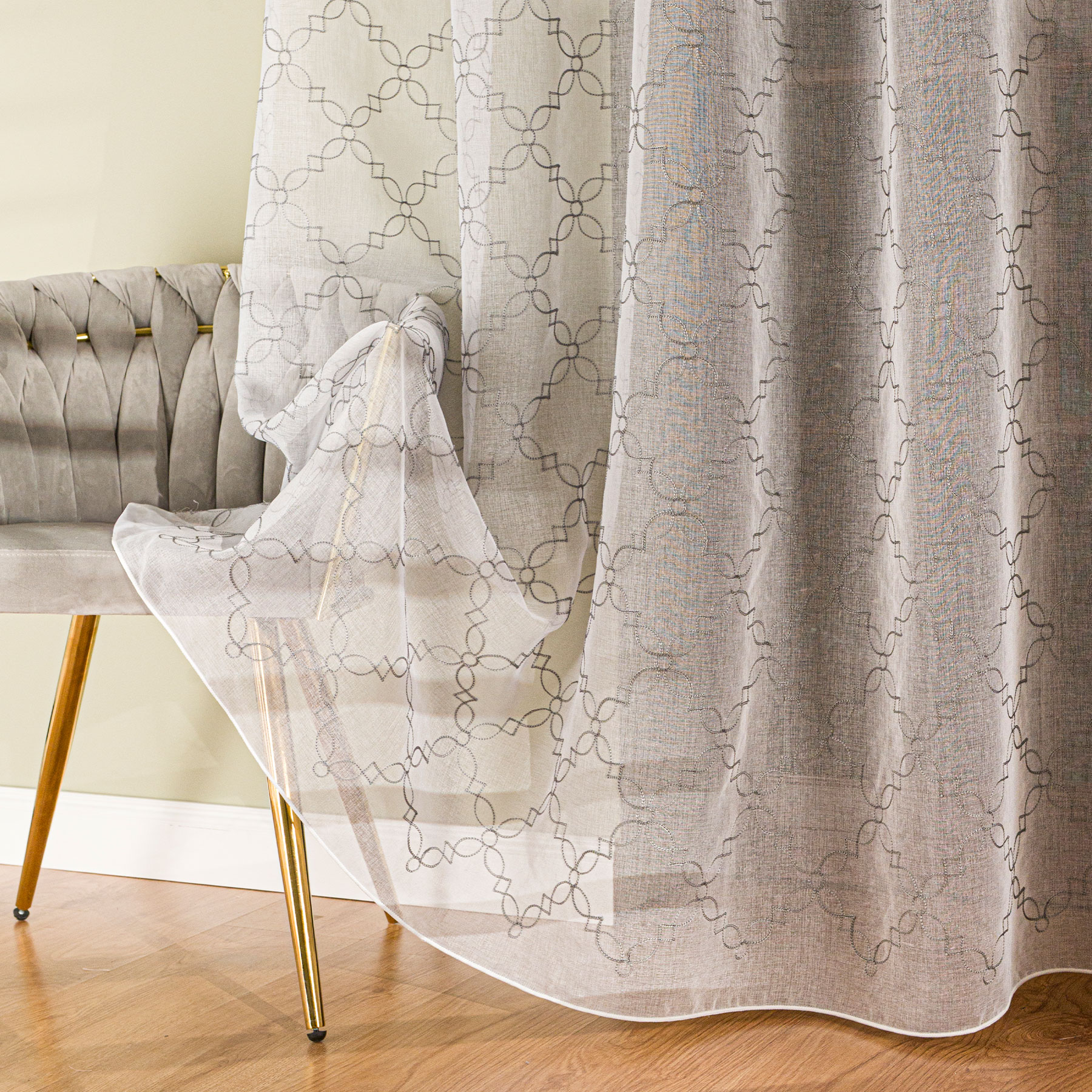 Vyšívaná biela so sivou záclona metrážová výška 280 cm