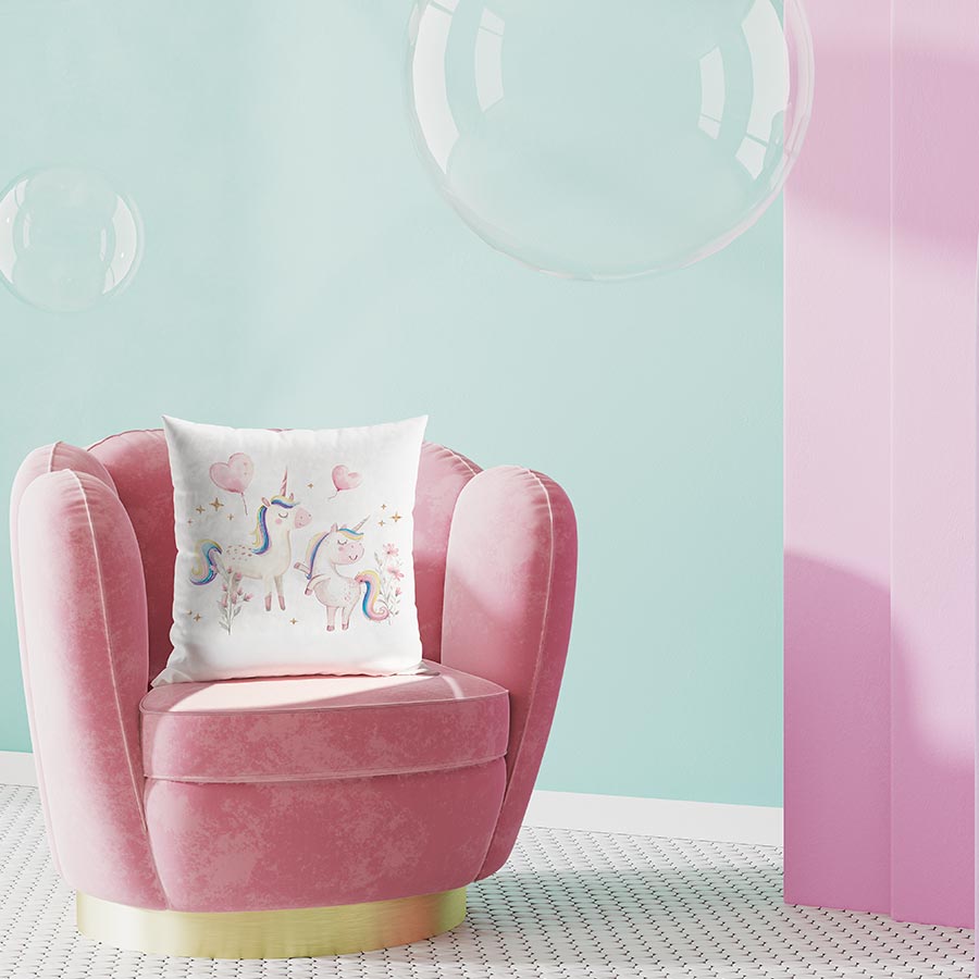 ZAMATOVÁ dekoratívna obliečka na vankúš SLADKÉ JEDNOROŽCE 40x40 cm