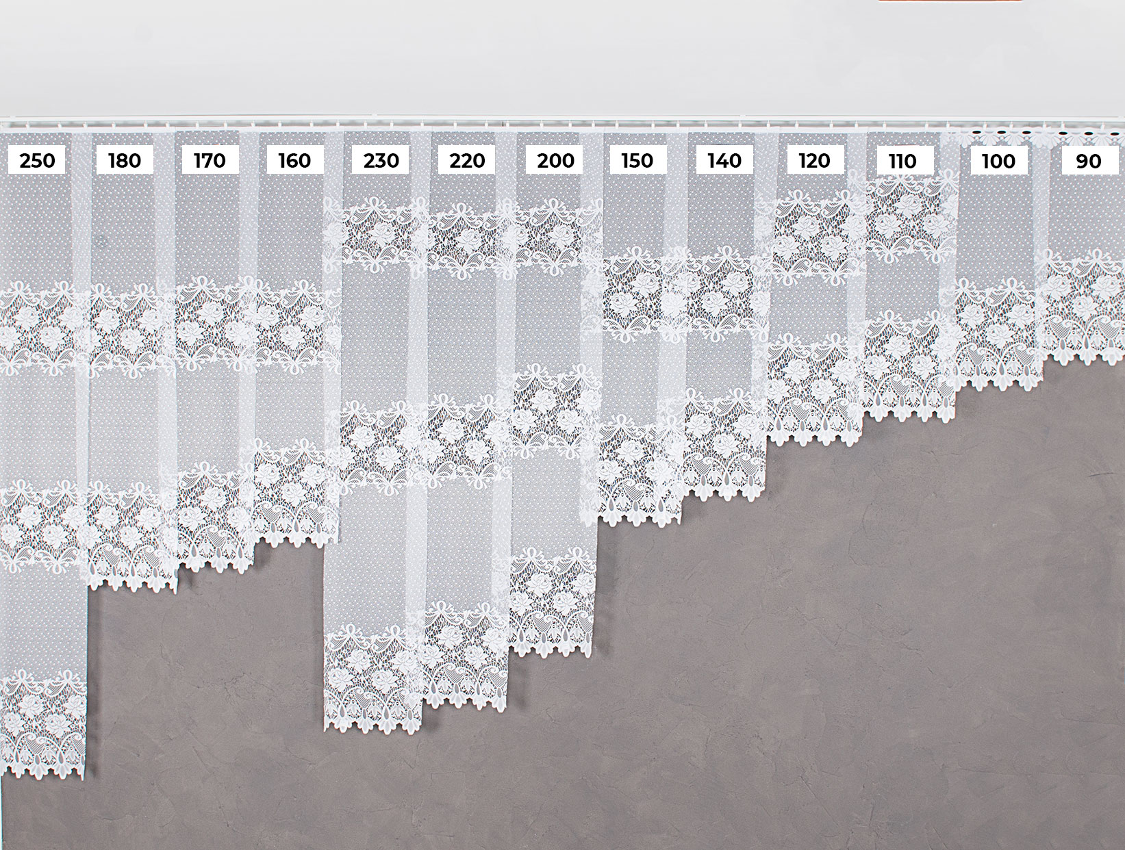 Metrážové záclony majú danú výšku, šírku si určujete sami.